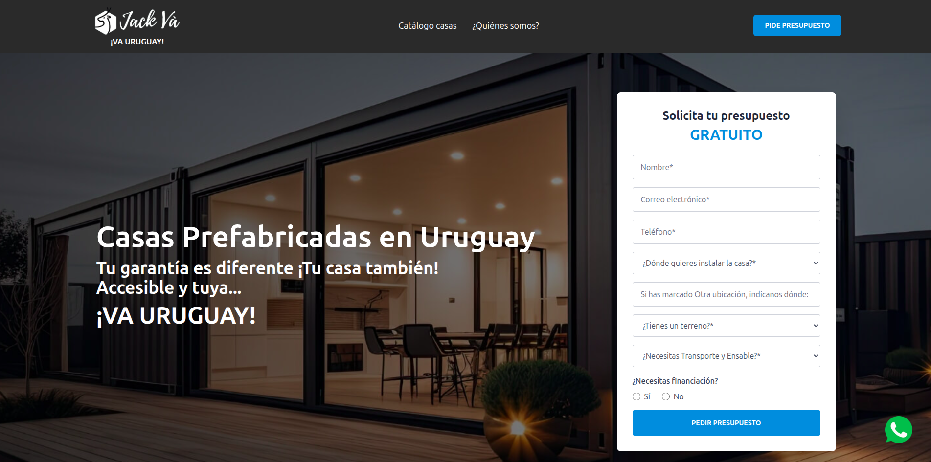Landing page estratégica de conversión para viviendas modulares con cotización personalizada.