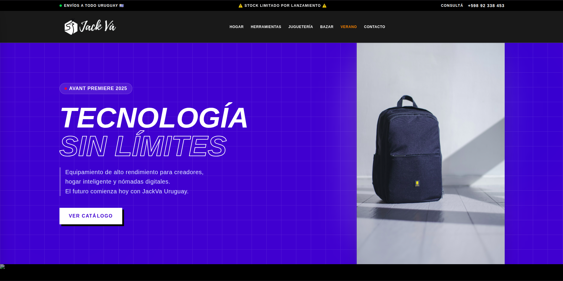 Desarrollo de catálogo web multiproducto con interfaz inmersiva de alto contraste y navegación optimizada para retail tecnológico y hogar.
